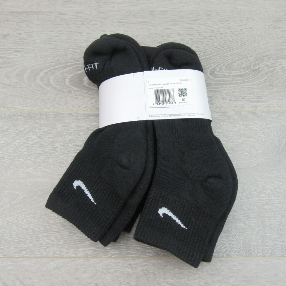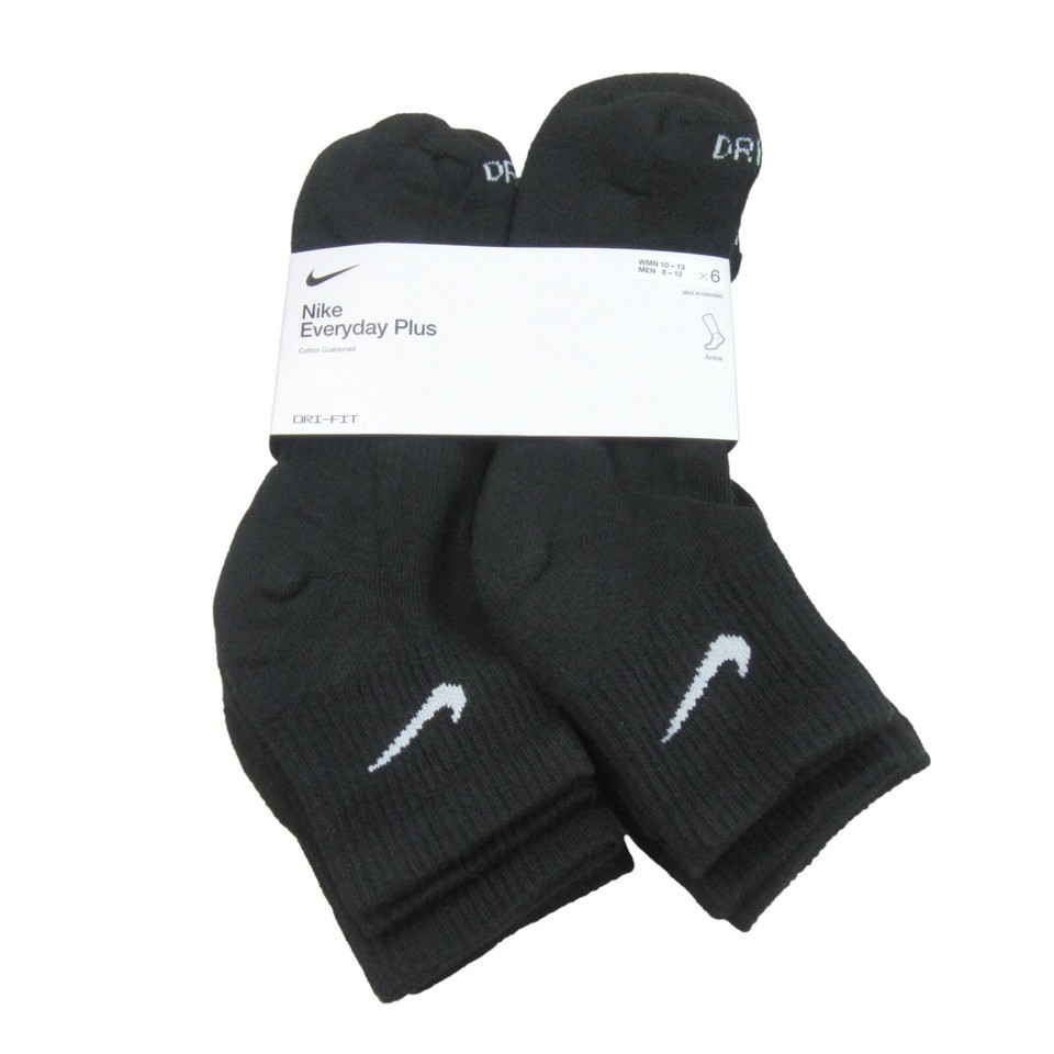 Nike Everyday Plus Cushioned Ankle Socks Dri-Fit 6 Pack Black w/ White Nike Swoosh Logo