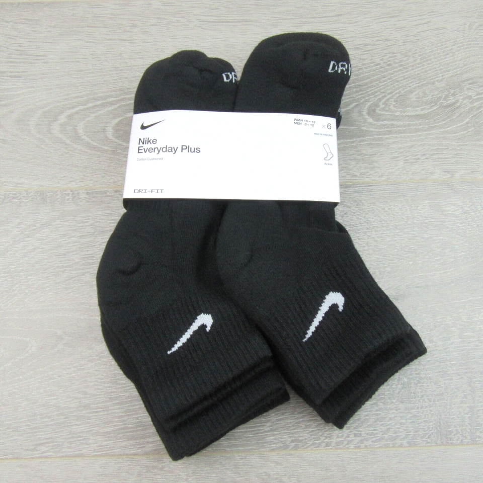 Nike Everyday Plus Cushioned Ankle Socks 6 Pack Mens Size 8-12 Black Dri-Fit NEW