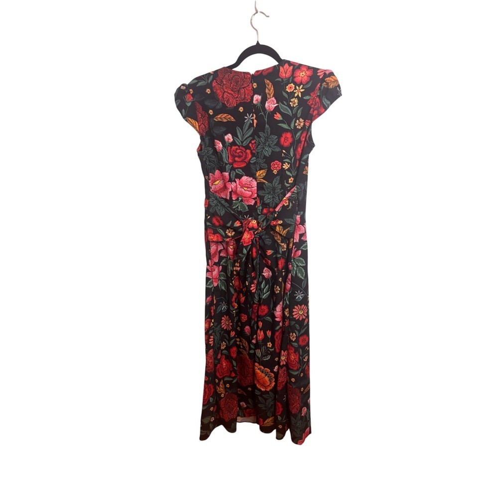Wayward Fancies eShakti Floral Midi Dress Medium Dark Academia Cap Sleeve Colorful Lined V-Neck Tie Back