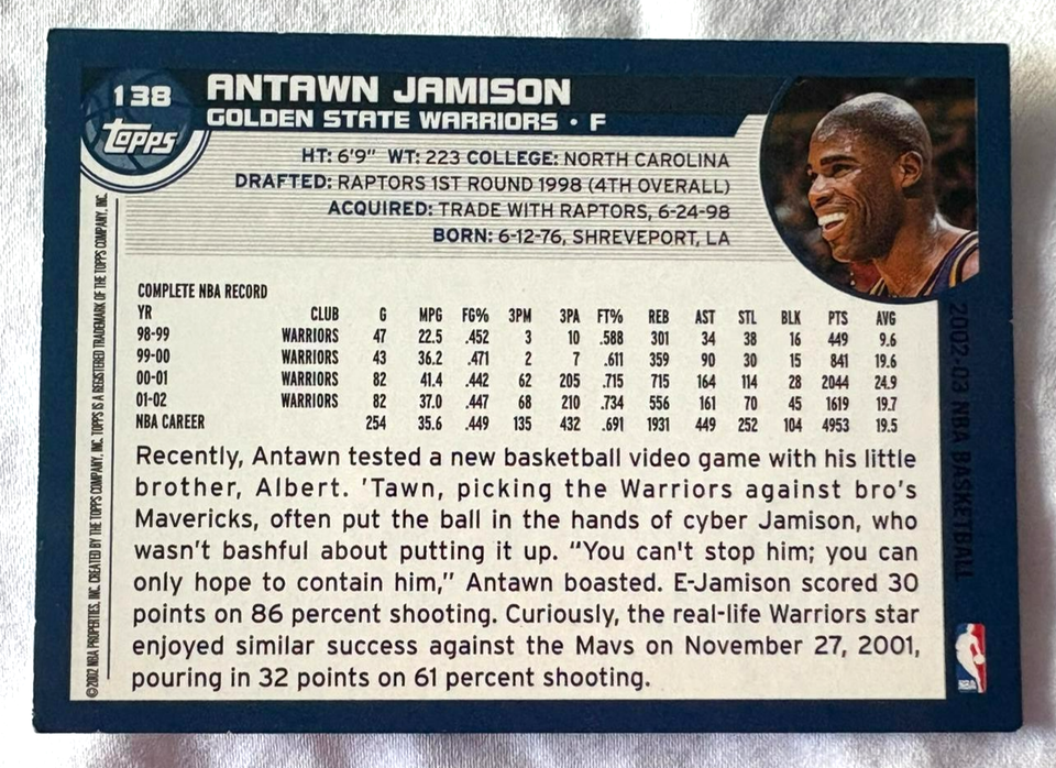 Antawn Jamison Rookie Card Era 1998-99 Topps Warriors NBA Collectible