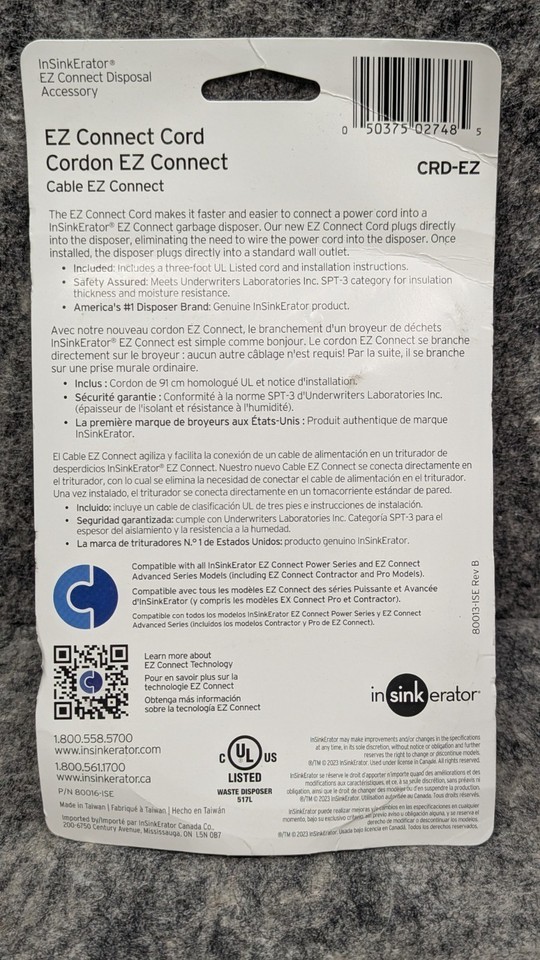 In Sink Erator CRD-EZ Power Cord 3-Foot for and similar items