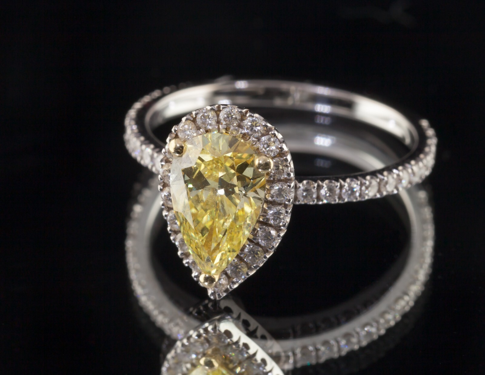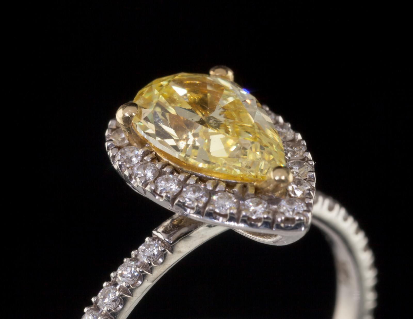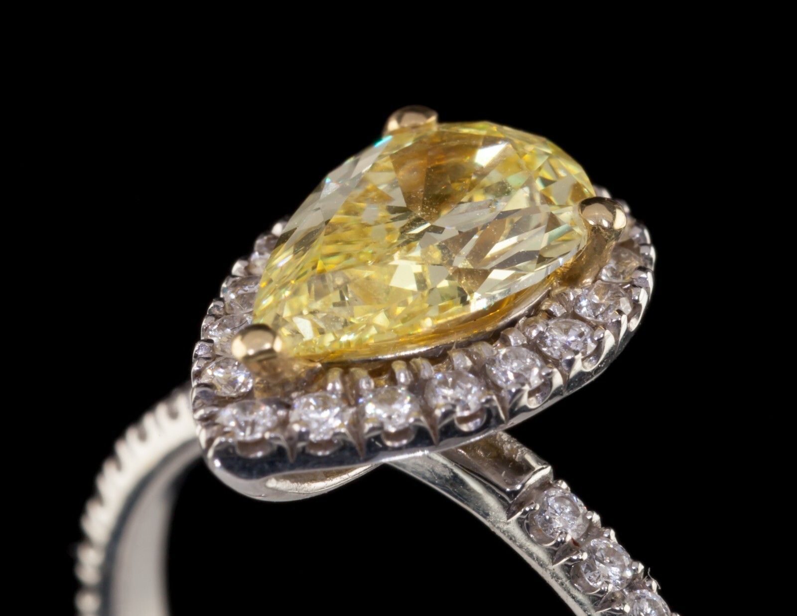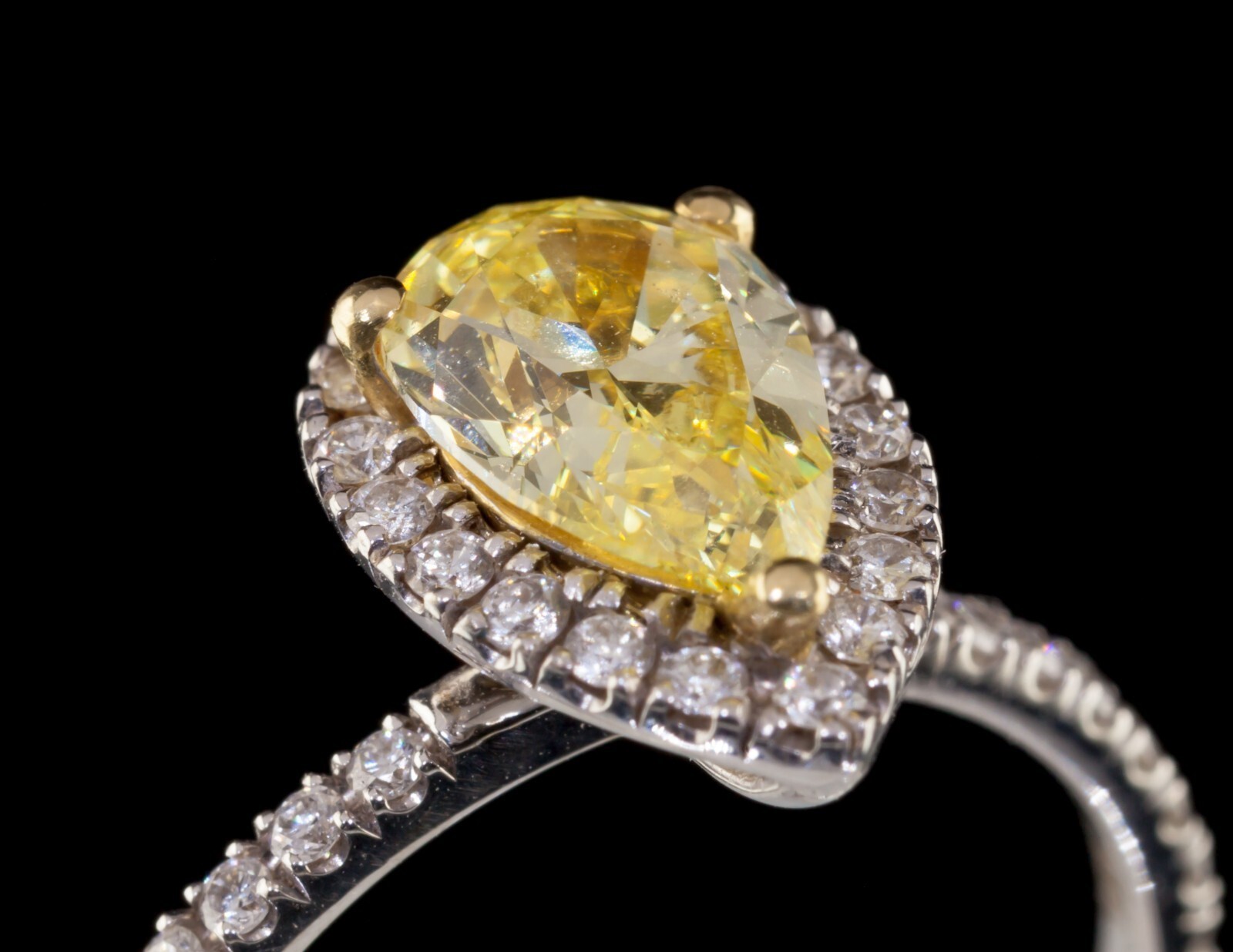Features 1.28 Pear Shape HPHT Fancy Yellow Diamond
