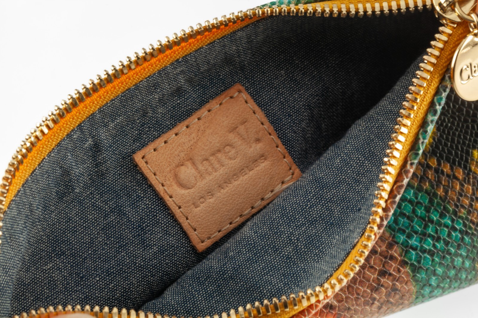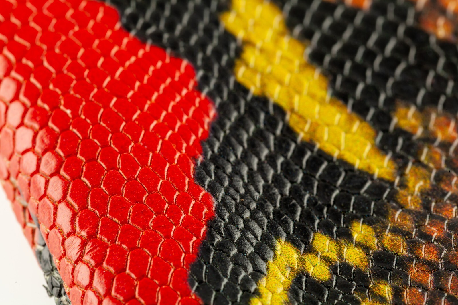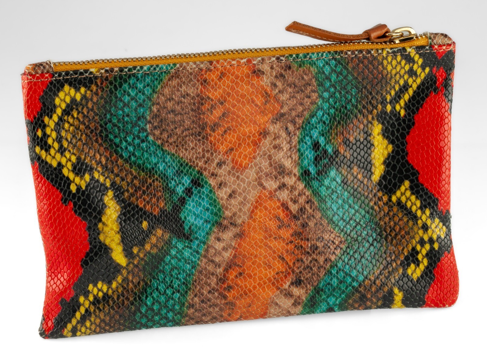 L'exterieur est l'imprime en peau de serpent multicolore (cuir en relief)