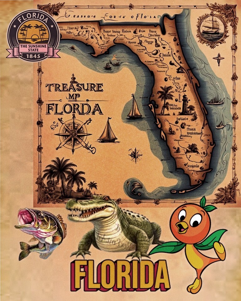 Old Vintage Florida Map 16x20 Unframed Art Print