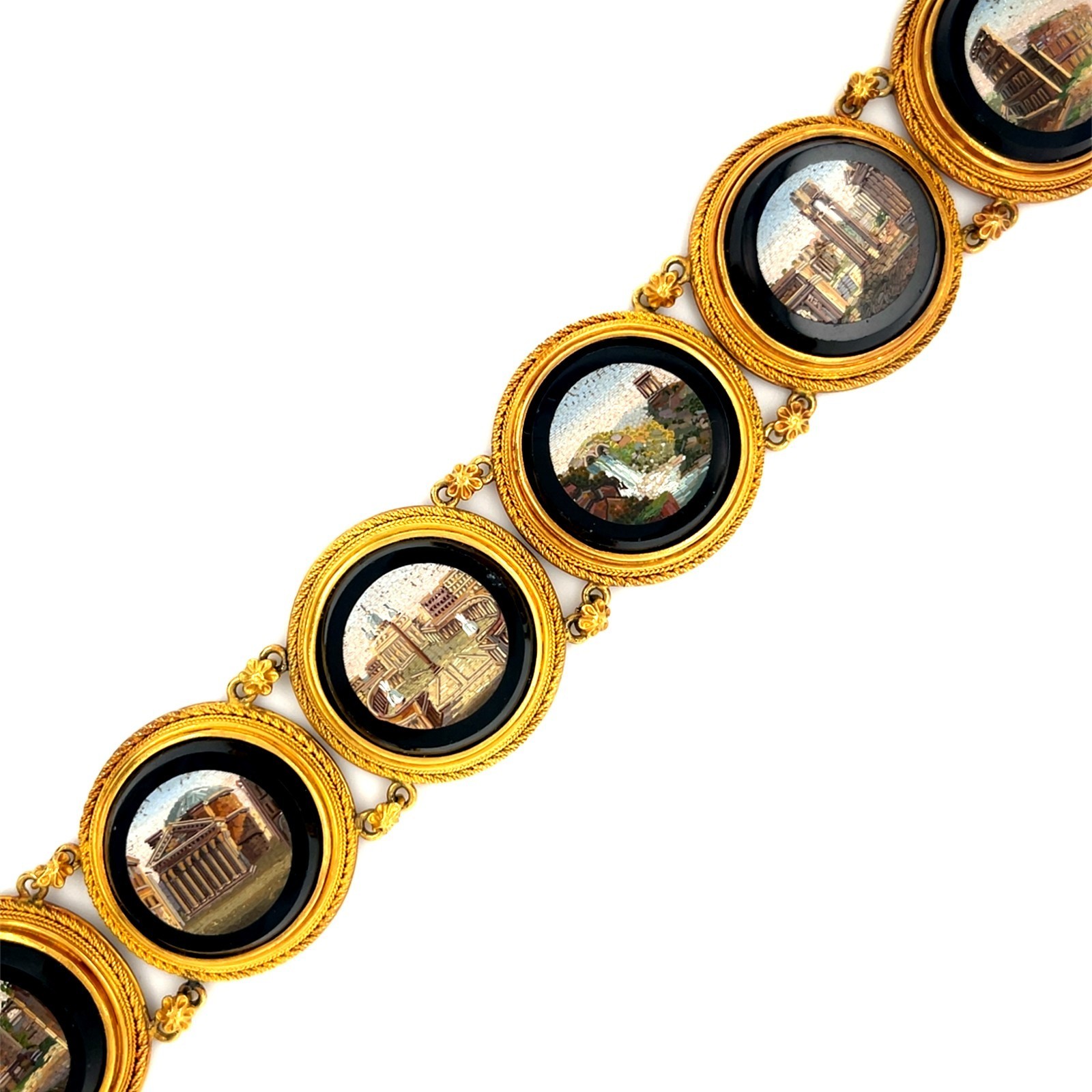 18k Oro Amarillo Victoriano Italiano Micromosiac Estacion Pulsera 6.5" 50.9 Gr