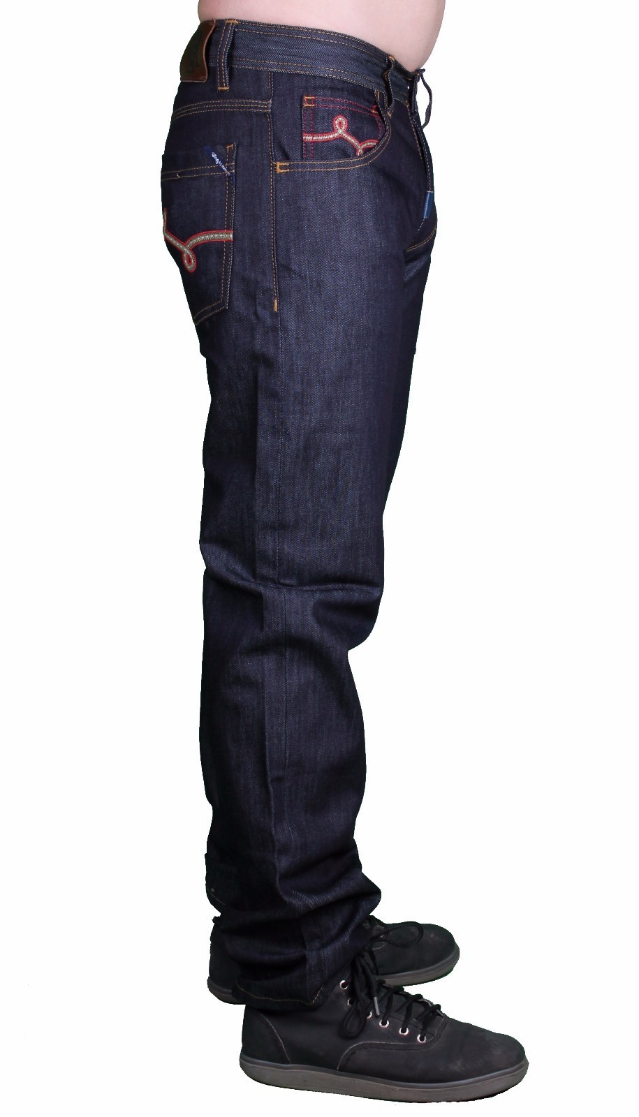 Questo e per un nuovo di zecca con Tags Lrg Men's Research Collection True Straight Fit Jean Indigo scuro crudo Cotone 100% Doppi tasche posteriori rivestiti in pelle autentica