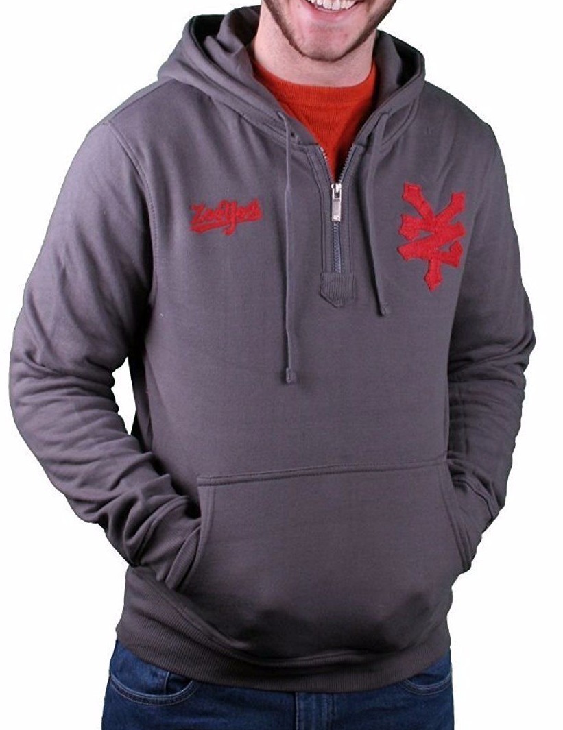 Zoo York 1/4 Cremallera Gris Marengo con el Rojo Fieltro Zy Logo Parche Jersey