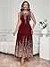 Elevate your wardrobe with this stunning Trendy Tron Navy Blue Sleeveless Dress. This elegant A-line gown features a flattering high waist design with beautiful pleating and contrast sequin details that catch the light perfectly. The round neckline and sleeveless tank style create a timeless silhouette, while the flared hem adds graceful movement. Crafted from premium knitted fabric composed of 91% Polyester and 9% Elastane, this dress offers medium stretch for a comfortable slim fit that flatters your figure. The all-over print pattern makes this piece truly special for homecoming events or festive celebrations. Complete with a convenient zipper closure, this long dress combines sophistication with practicality. Machine washable with soft detergent for easy care. Available in multiple color options including Burgundy, Silver, and Navy Blue, and sizes S through XL.