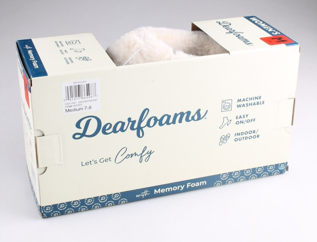 Chaussons Femme Dearfoams Avec Mousse À Mémoire, Gris Clair, NEUF Dans La Boîte