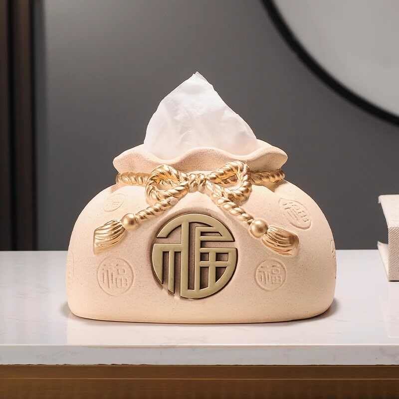 Luxury Ceramic Blessing Bag Tissue Box, High-End Creative Decor Organizer for Li