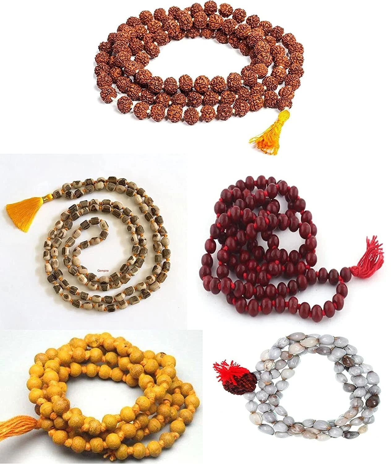 Set of 5 mala, all 108+1 beads