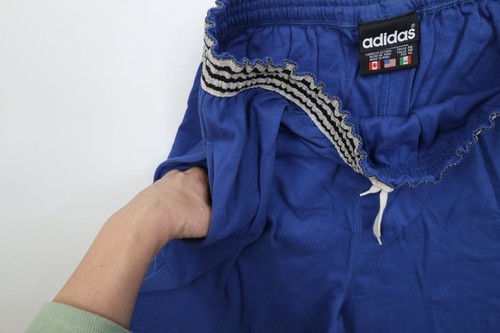 Deadstock Vtg 90s Adidas Mens XL Spell Out Striped Above Knee Shorts Royal Blue