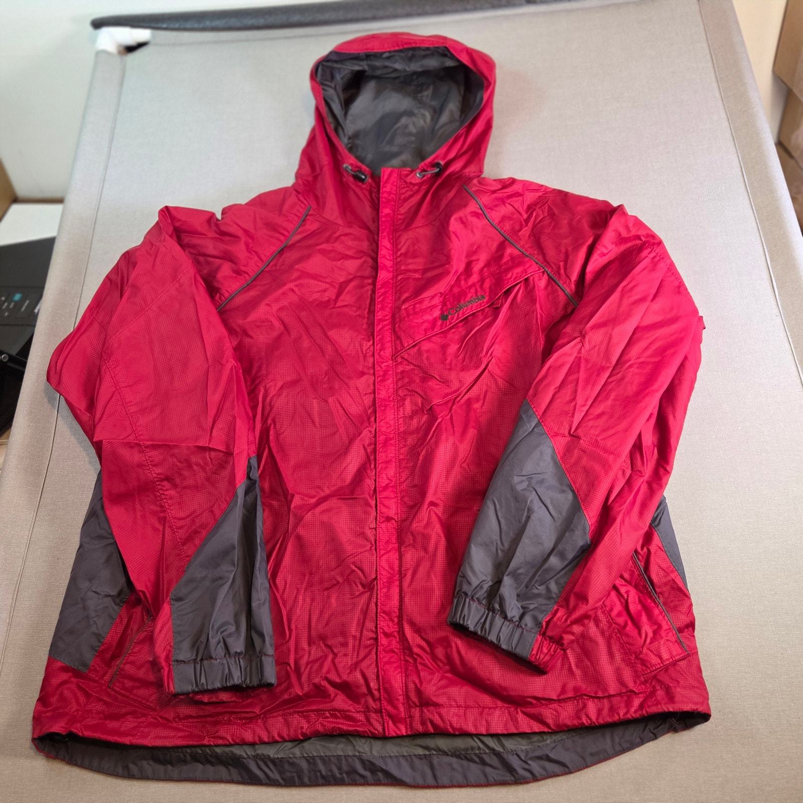Columbia Men’s XL Red Gray Nylon Hooded Jacket Waterproof Windbreaker