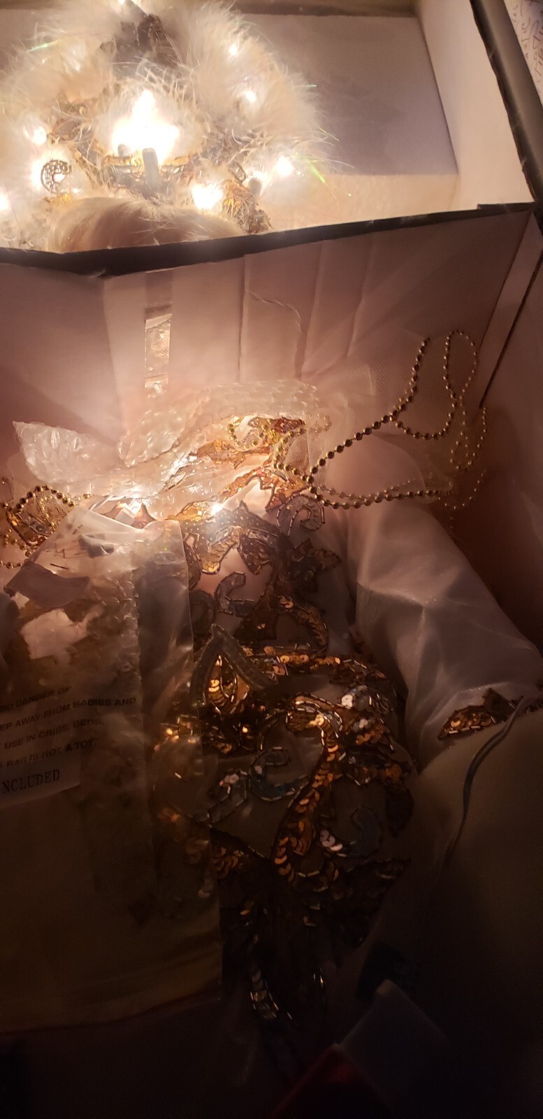Accessories: Jeweled mask, headdress with working embedded lights
