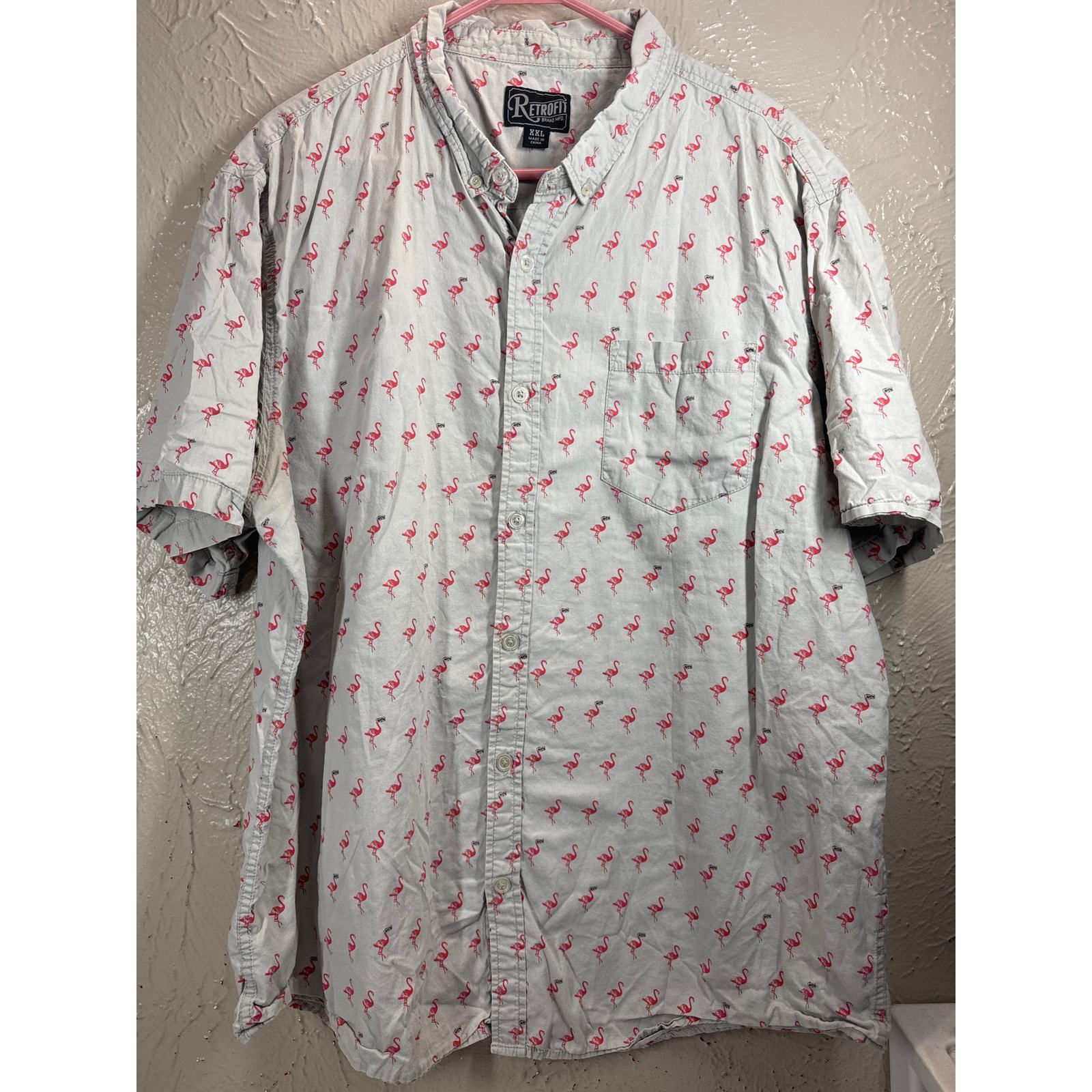Retrofit Brand MFG Mens Button Down Gray Flamingo Print Shirt Size XXL