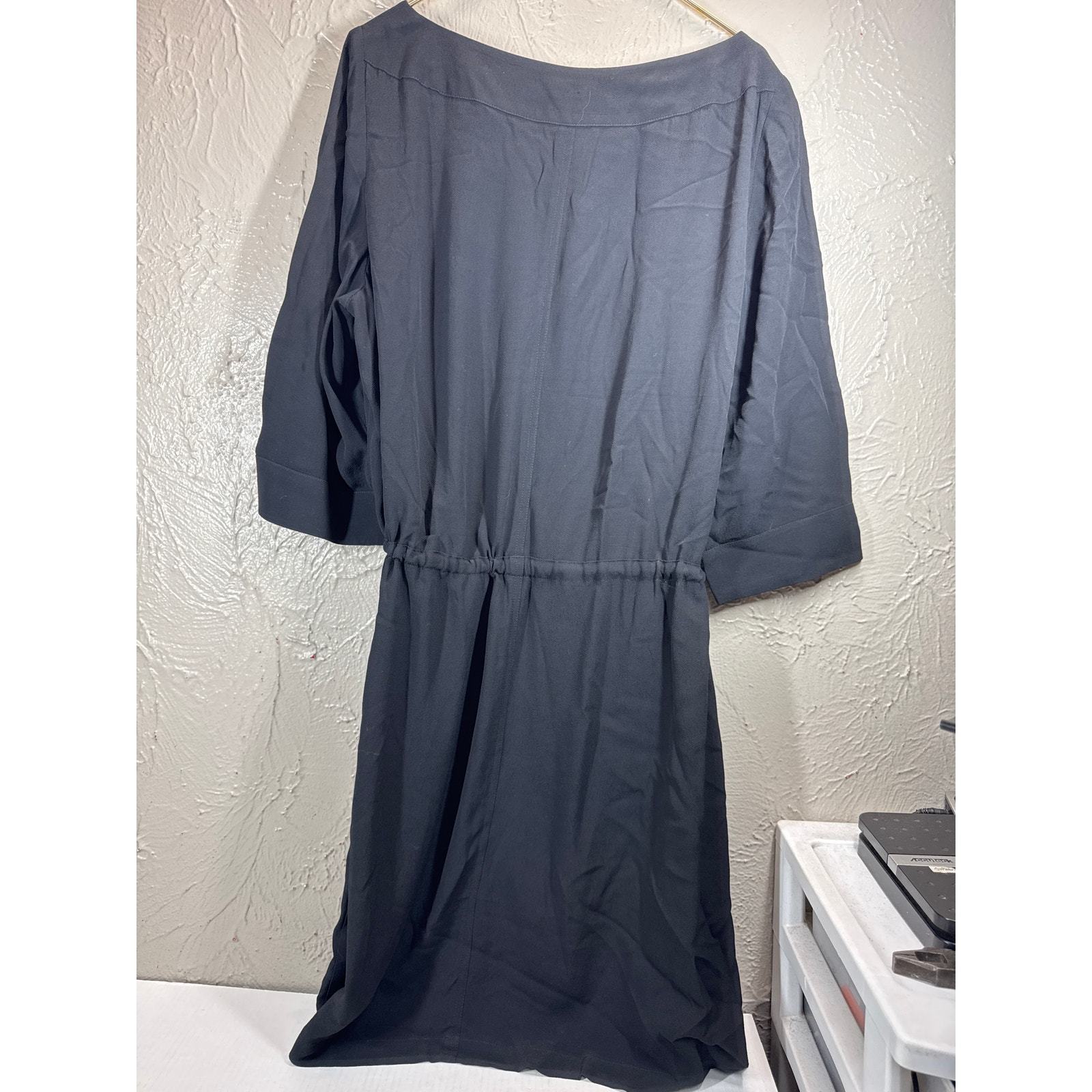 J.Jill Womens Waist Tie 3/4 Wide Sleeve Boat Neck Black Shift Dress Size XL