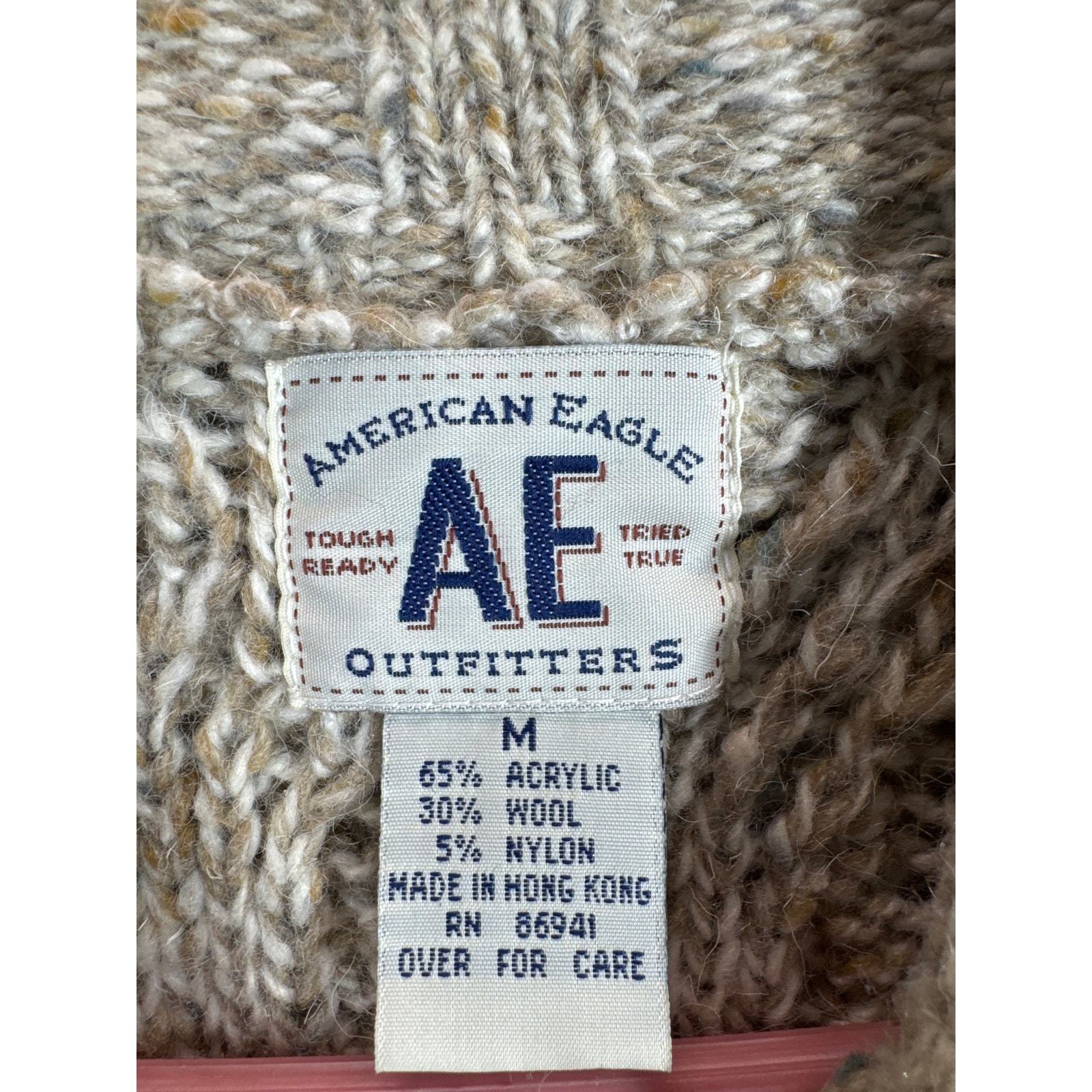 American Eagle Cable Knit Sweater Fisherman Wool Blend Neutral Womens Medium