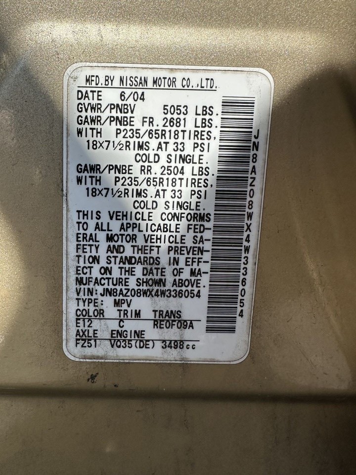 JN8AZ08WX4W336054 |