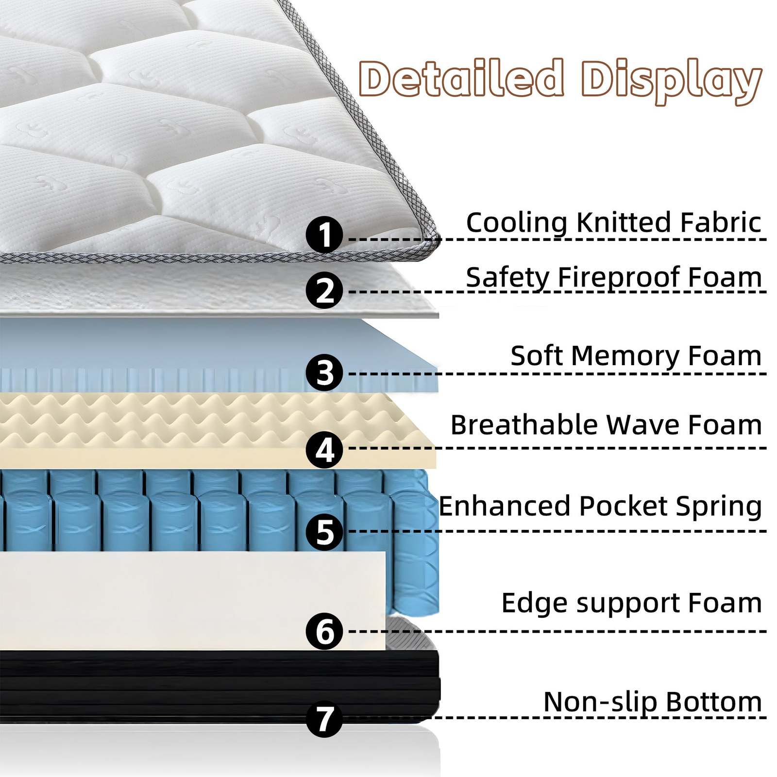 12 inch Mattress Hybrid Gel Infused Memory Foam and Pocket Spring Mattress, Twin Size Mattresses Hybrid Innerspring Mattress in a Box