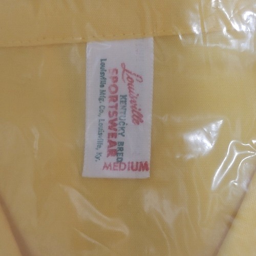 Rare Vintage / New in Plastic 1970s Louisville Sportswear John Deere Yellow Permanent Press Durable Water Repellent Lightweight Jacket - Made in USA. Adult's Size Medium. 50% cotton / 50% polyester. Swift zipper.