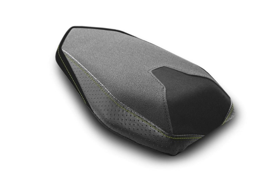 Introducing the Motorsports Seat Cover for your BMW S1000R! It features stylish Tec-Grip front and rear panels and a luxurious synthetic suede riding surface that allows superior rider stability during hard braking, acceleration, and attacking your favorite corners. Handcrafted with aggressive stripes and carbon fiber look marine-grade vinyl this sets you apart from the crowd. Ride in Style with Luimoto!
