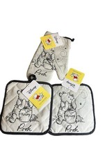Disney Winnie the Pooh Kitchen Oven Mitt 2-Pot Holders Black White Hunny Bee