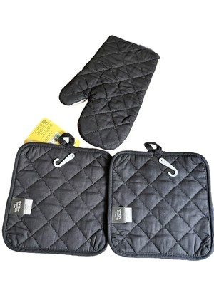 Disney Winnie the Pooh Kitchen Oven Mitt & 2-Pot Holders Black & White Hunny Bee