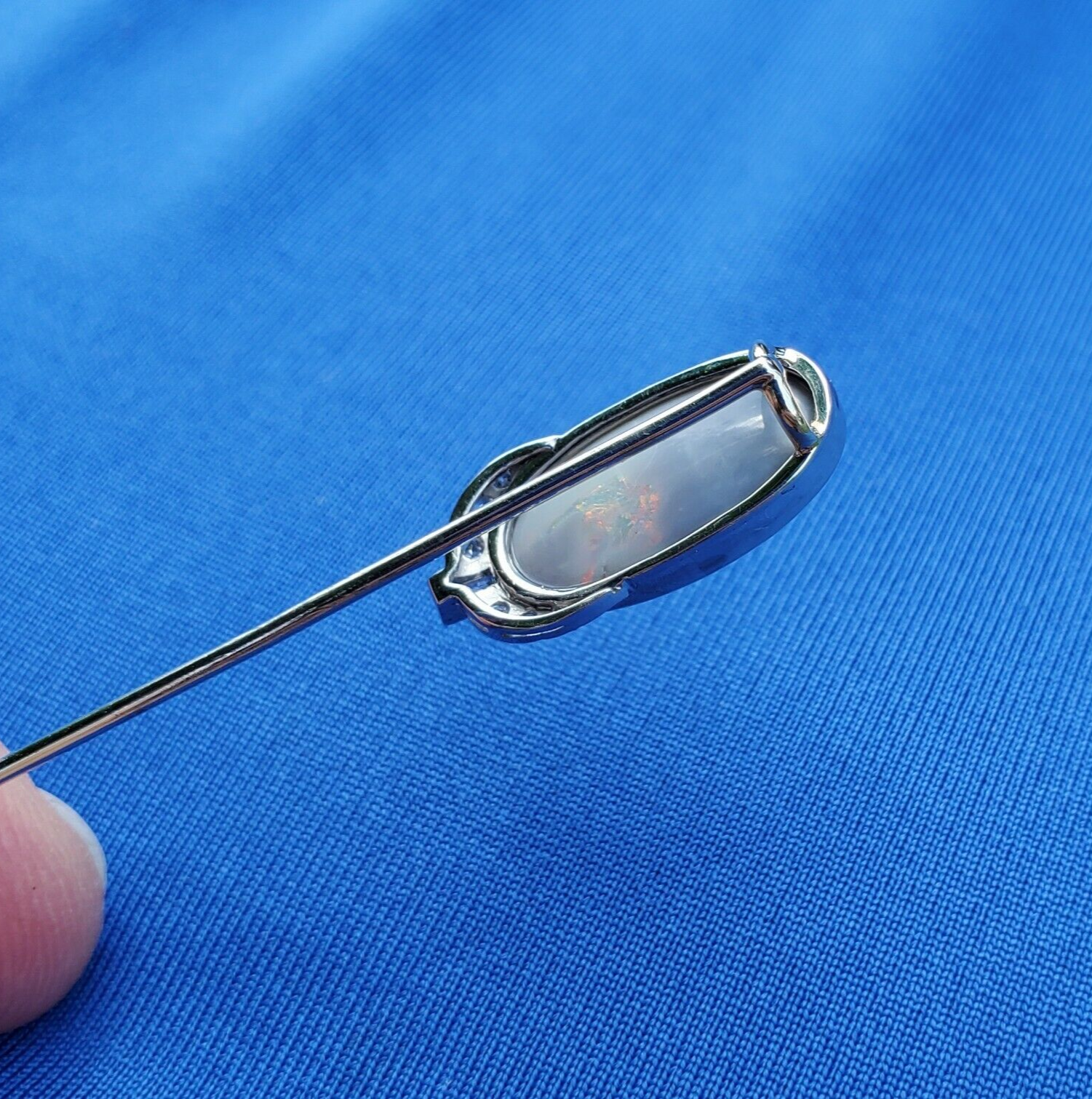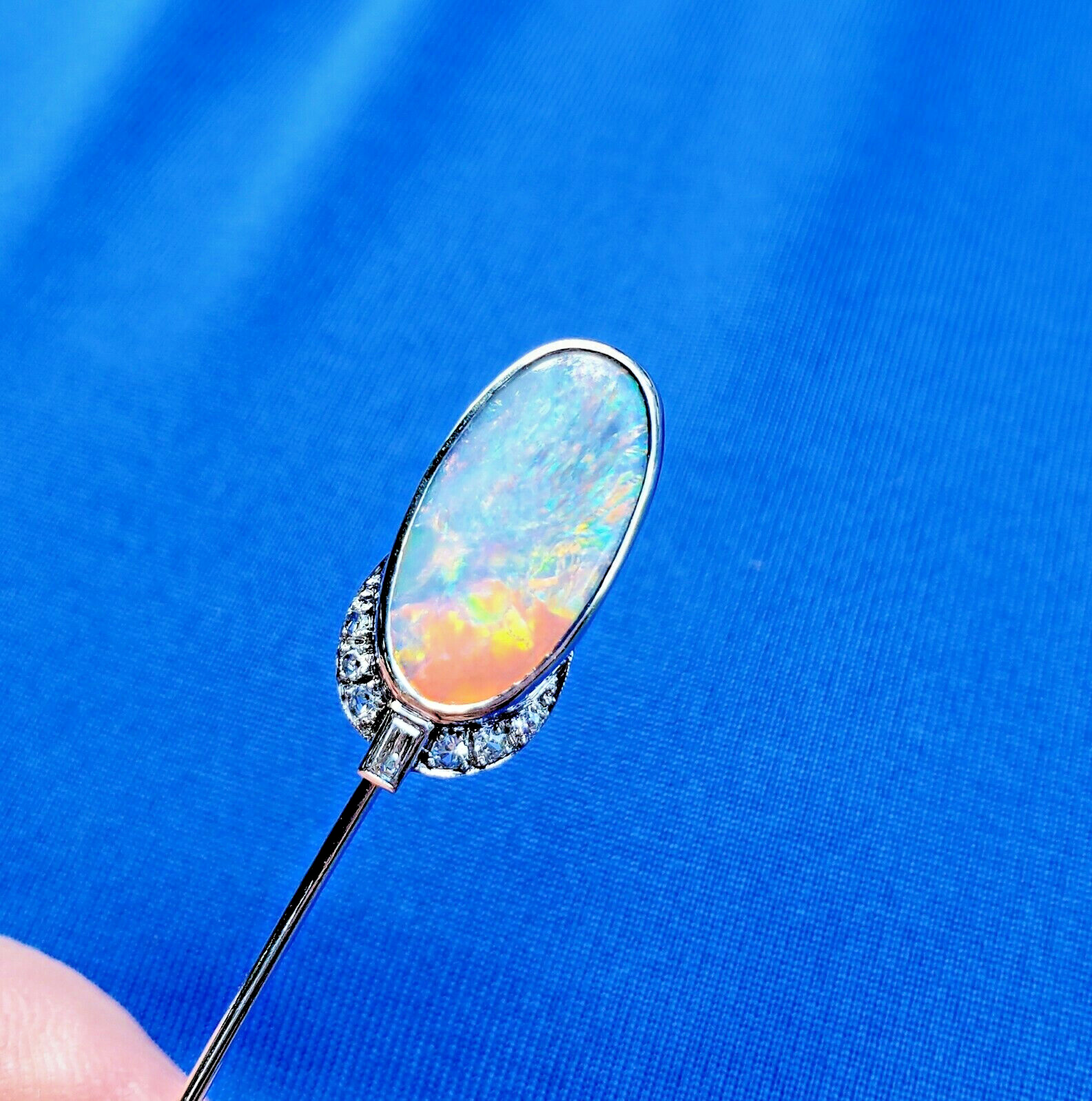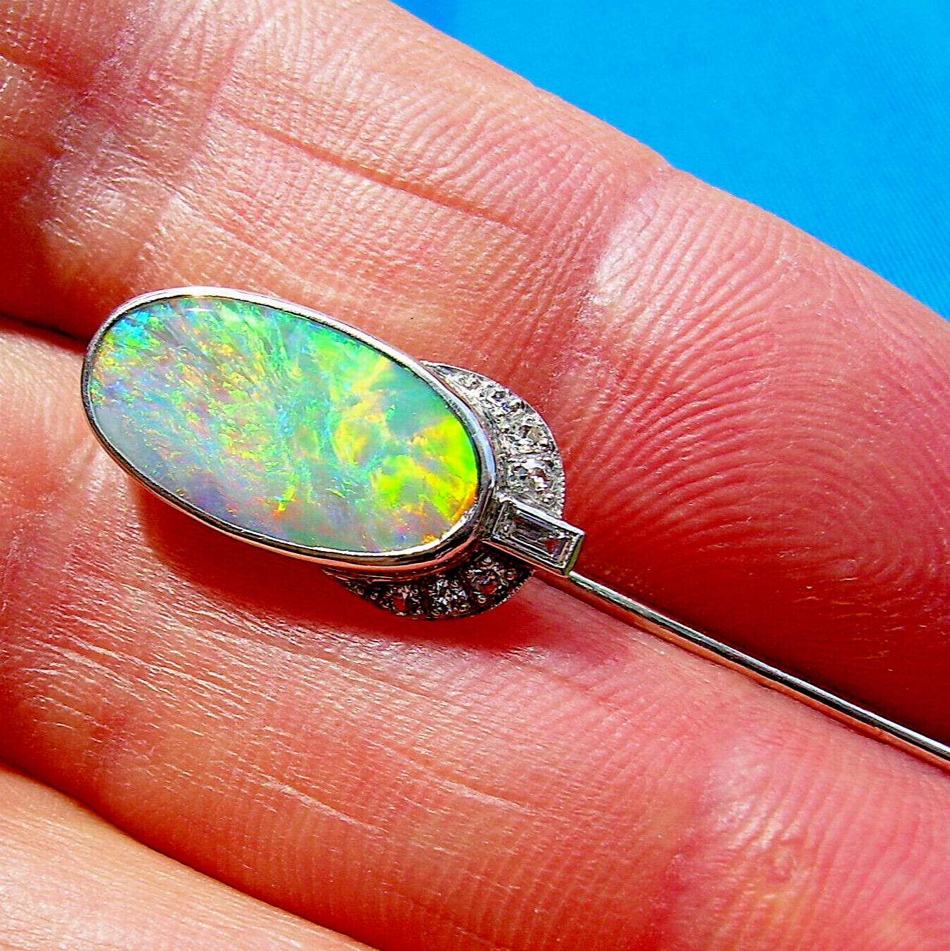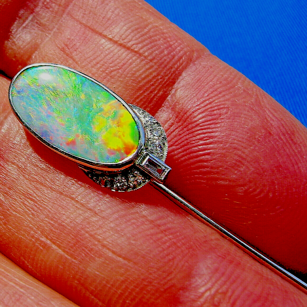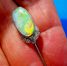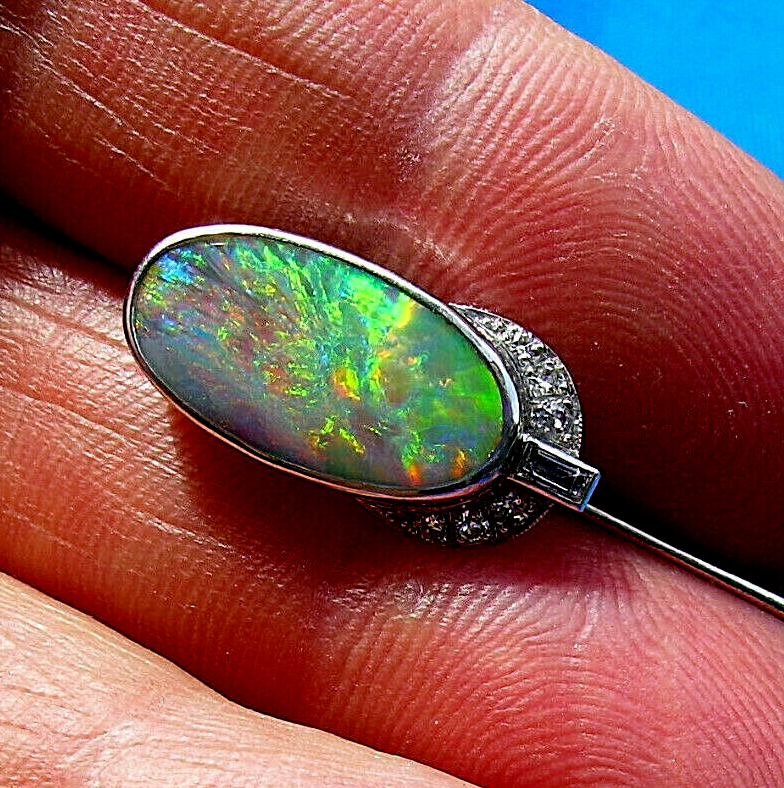 EXCITING NATURAL EARTH-MINED OPAL DIAMOND PLATINUM DECO STATEMENT PIN.