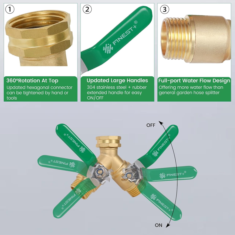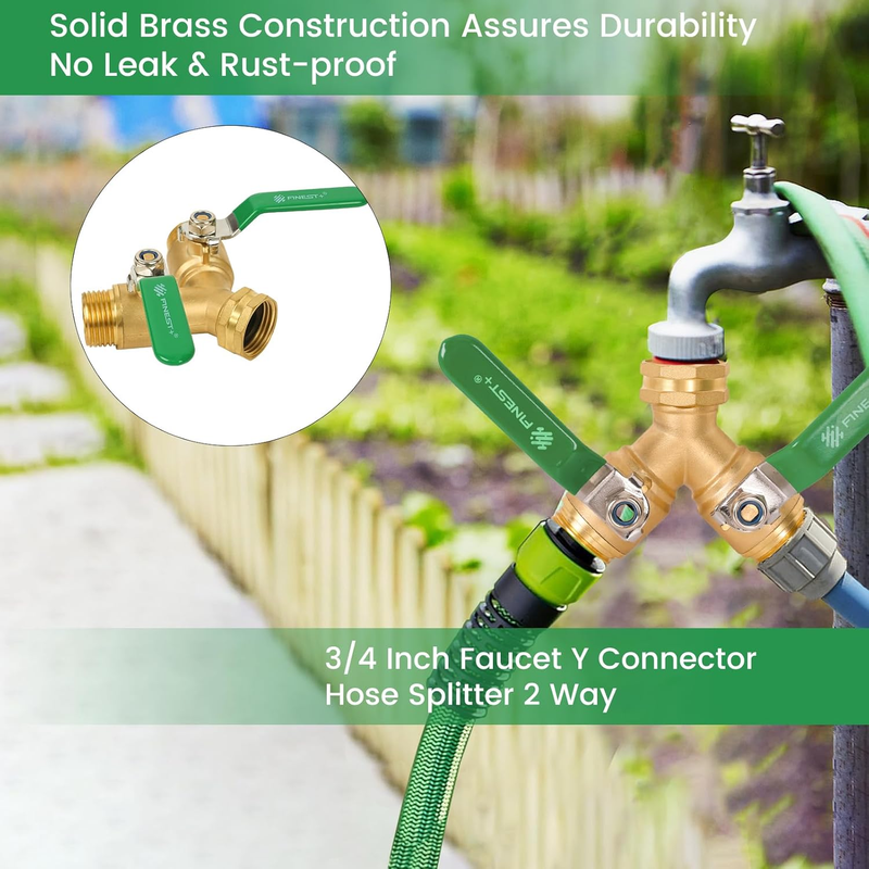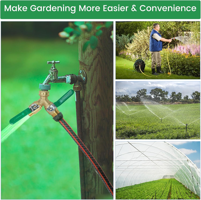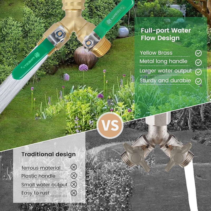 Garden Hose Splitter 2 Way, Heavy Duty Brass Y Valve Garden Hose Splitter with S