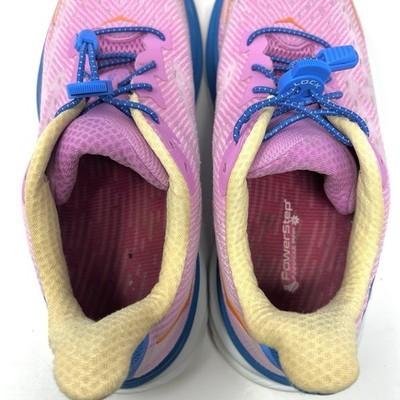 Hoka One Women?s Clifton 9 Running Shoe Sz 10 B Pink Blue Sneaker 1127896 CSLC