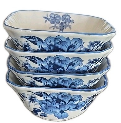 Four (4) Pioneer Woman ~ DELILAH BLUE ~ Stoneware ~ 5.75" Square ~ Cereal Bowls