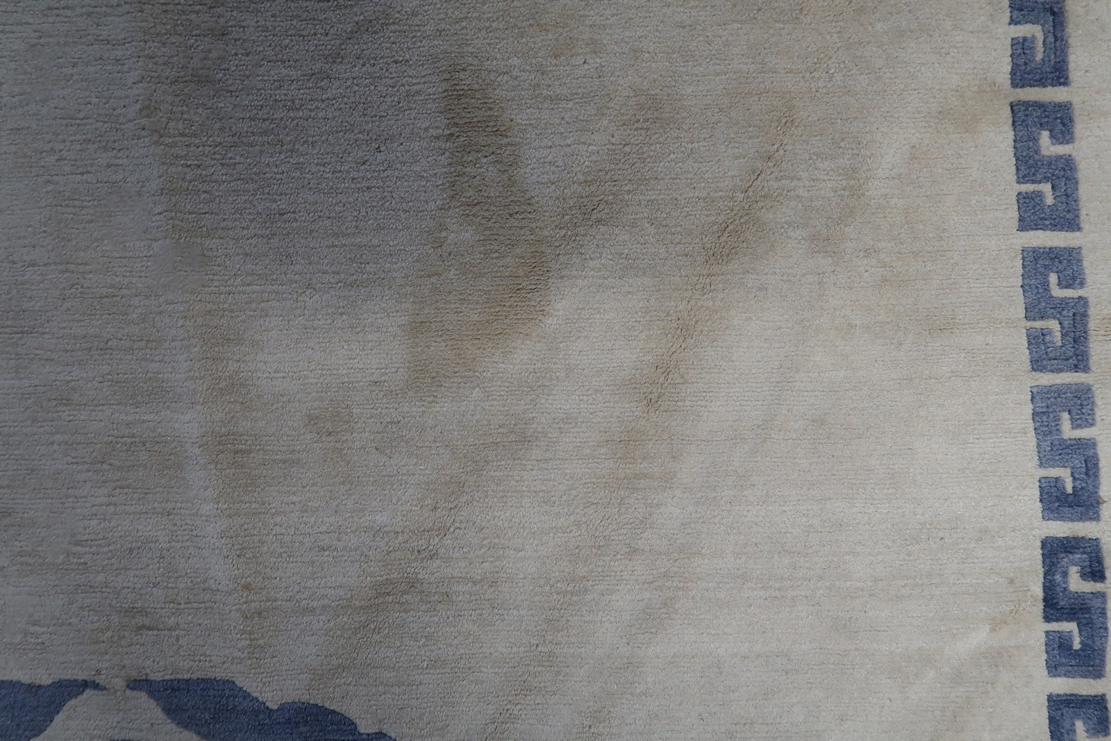 Confectionne a partir de laine de haute qualite (source : Nepal), ce tapis possede un velours epais, doux et lourd, offrant une sensation de luxe sous les pieds. Il est dans son bon etat d'origine et sa construction durable le rend ideal pour les zones de passage de votre maison.