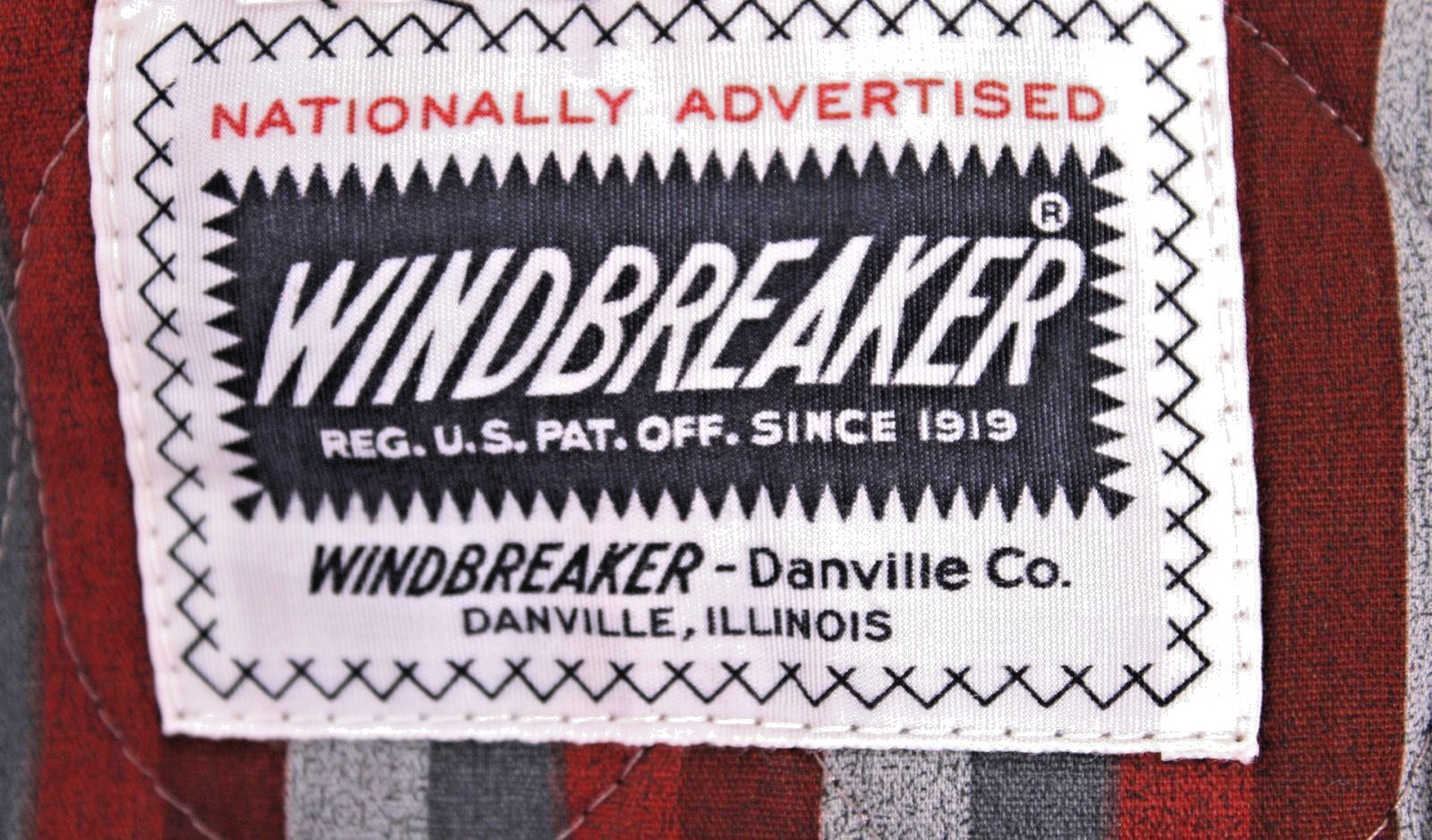 Classic late 1940s?1950s Rockabilly Danville red windbreaker jacket. Crisp cotton shell with striped lining and contrast elbow patches. Features a Scovill gripper zipper with patented ?EZ Zip? tab, plus buttoned side adjusters for a tailored fit. This jacket was barely worn and never washed, leaving it in exceptionally crisp condition ? a true survivor from the Rockabilly era.