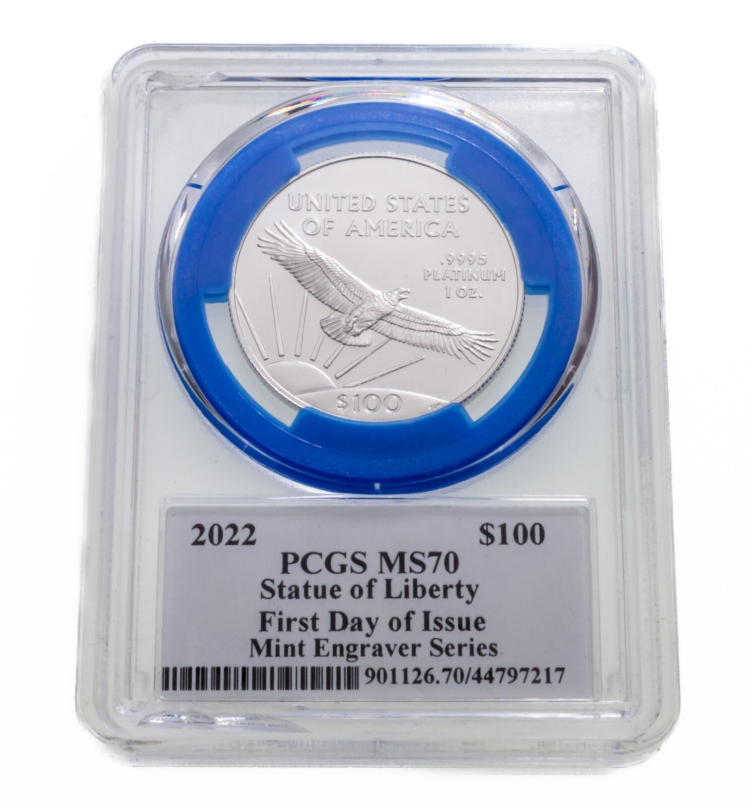 2022 P 100 $ Platinum Statue of Liberty Fdoi Mint Series Series PCGS MS70
