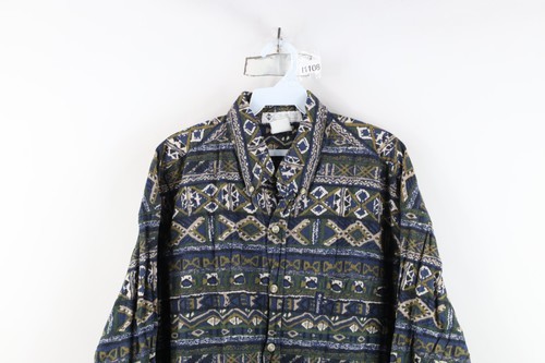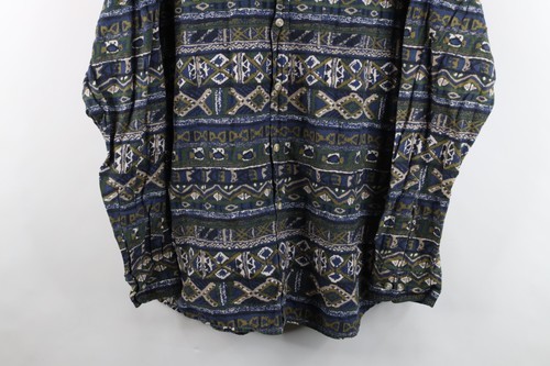 Vtg 90s Columbia Mens 2XL XXL Faded Abstract Geometric Flannel Button Down Shirt
