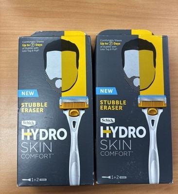2x Schick Hydro Skin Comfort Stubble Eraser Razor with 2 Razor Refill Blades