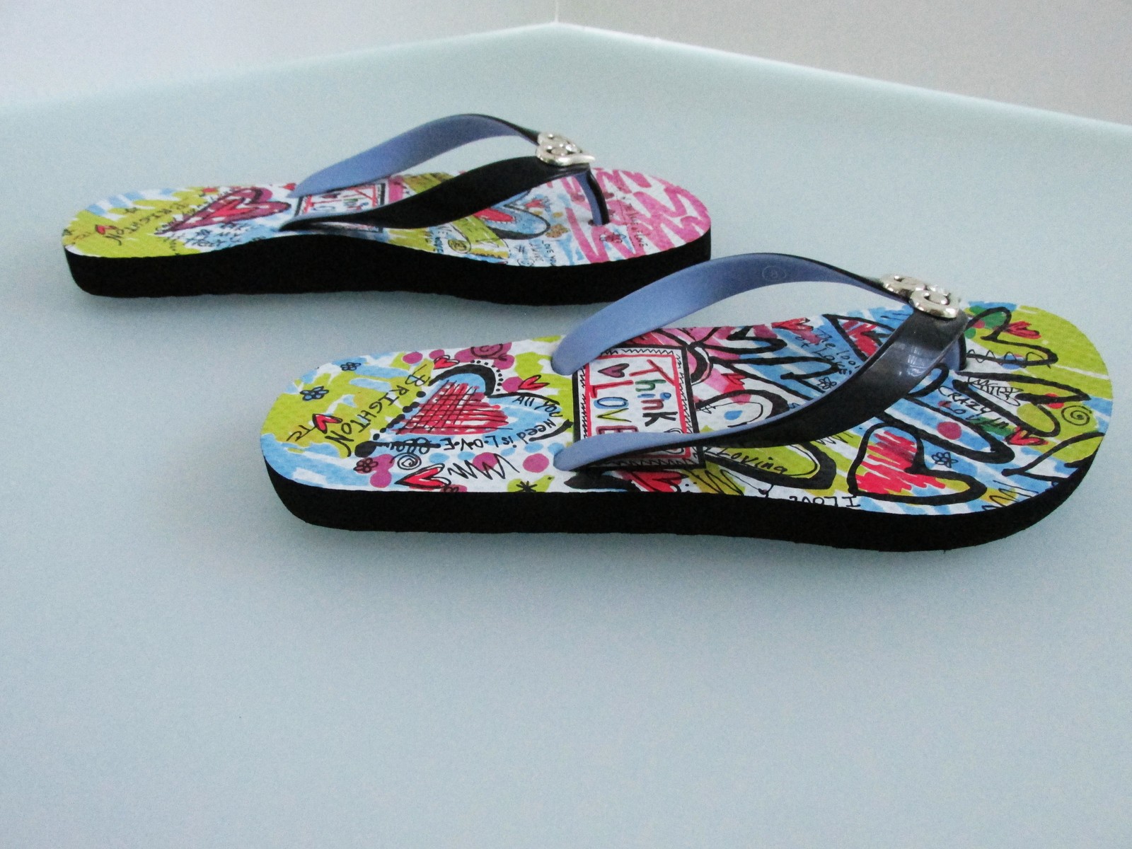 Description: Up for sale is a pair of Brighton new women's flip flops. These colorful flip flops are US size 8 M. They have a black thong upper with a very colorful insole. These flip flops feature a silver heart on the thong and have have rubber uppers bottoms. These new Brighton flip flops do not come with a box.