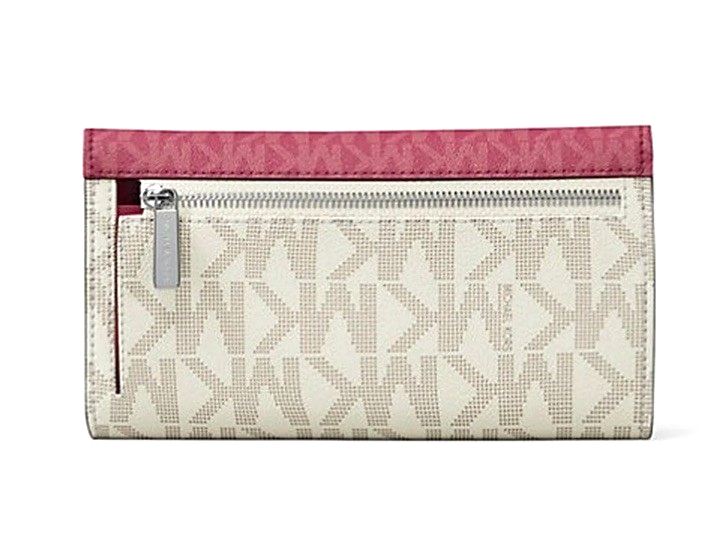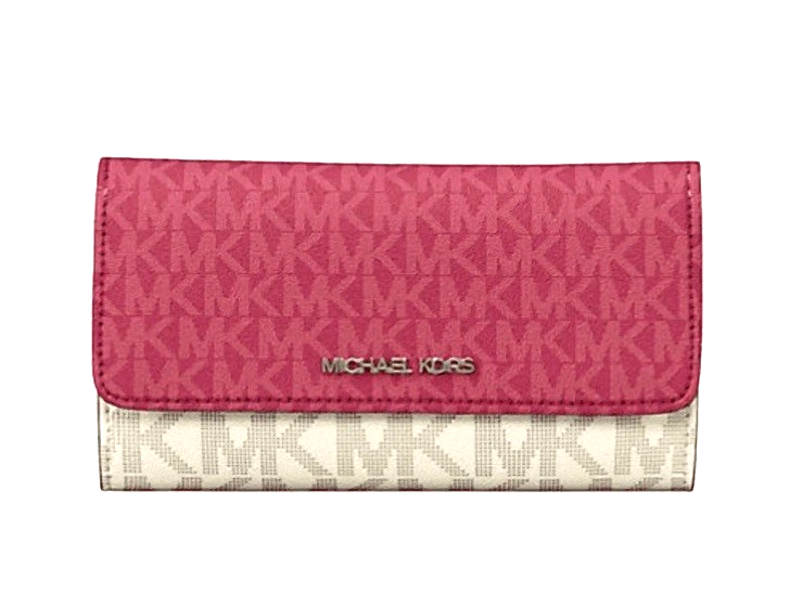 New Michael Kors Jet Set Travel Large Logo Trifold Wallet Dark Raspberry Multi