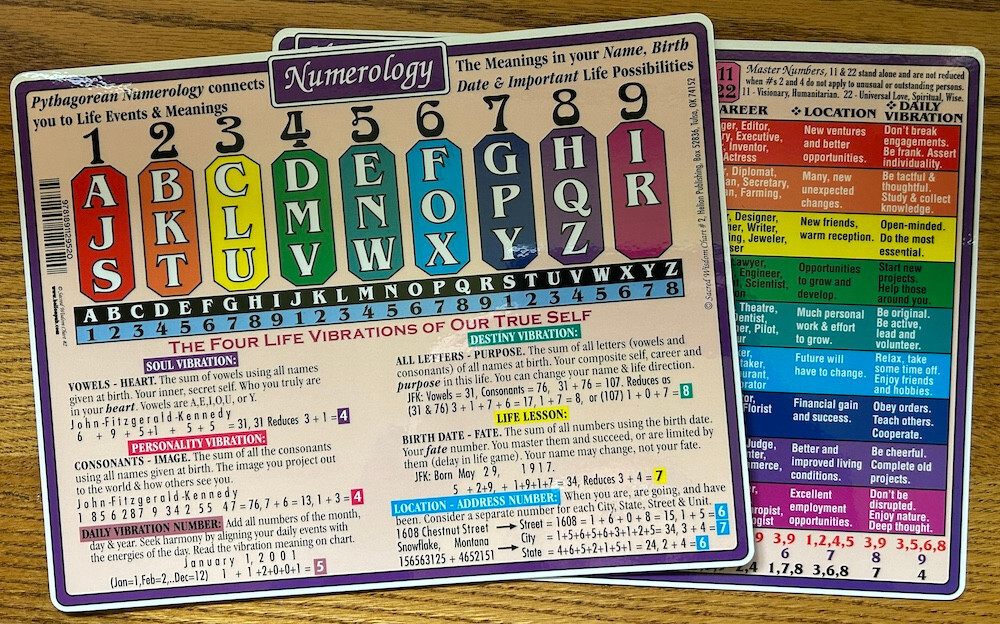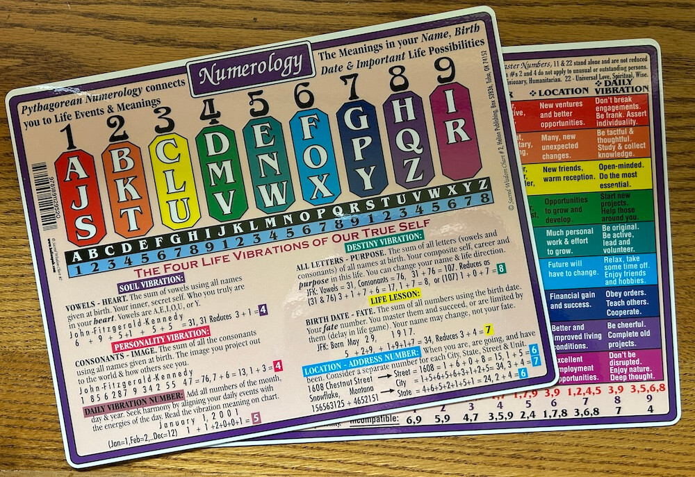 Numerology Chart - 8.5"x11" Double-Sided Laminated Chart!