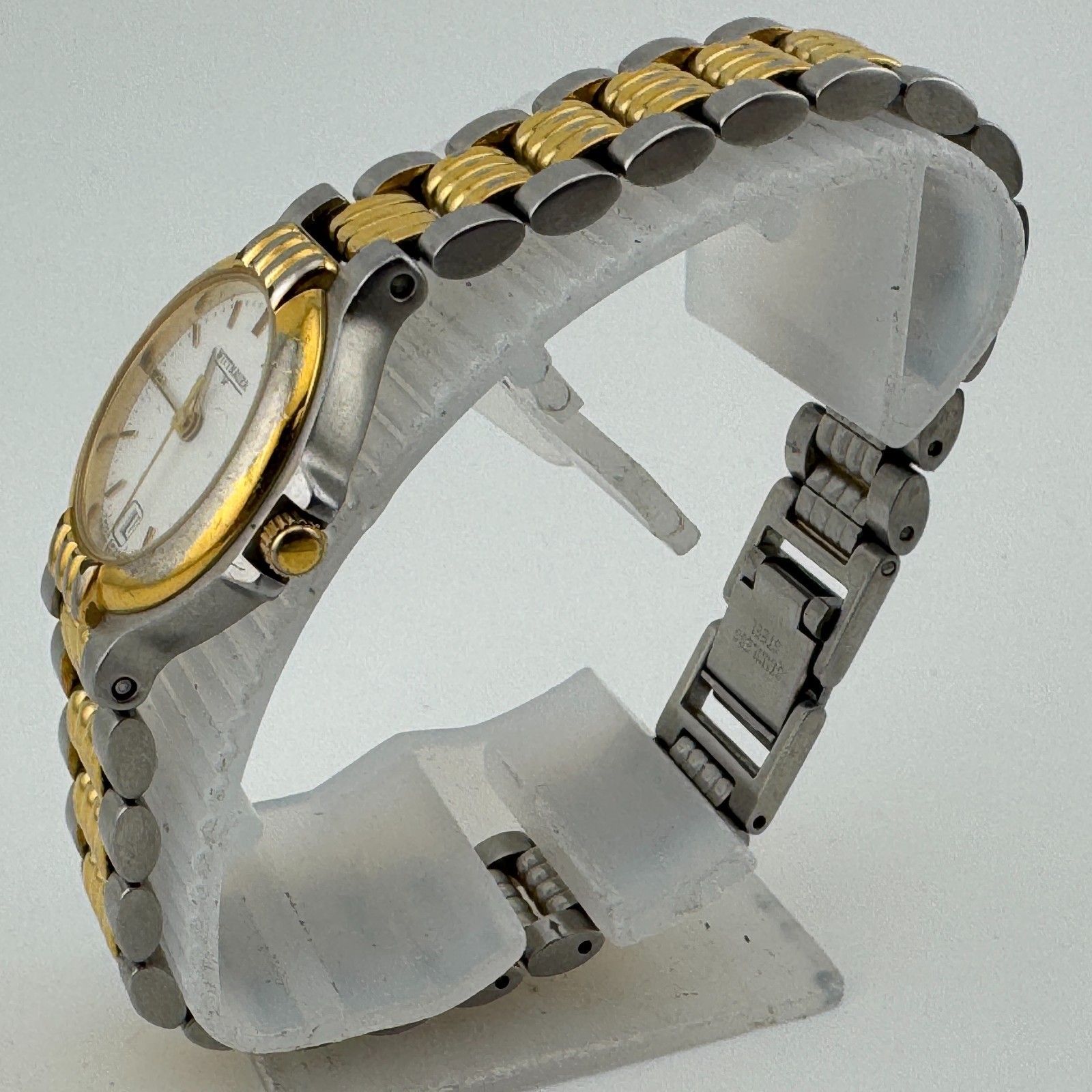 VTG Wittnauer Swiss Quartz Watch Women Dual Tone Steel Date New Battery 6.75"