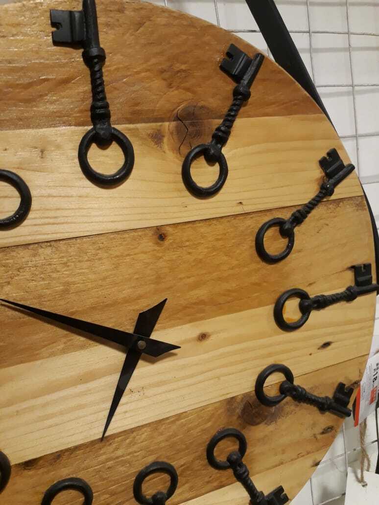 Naturholz Eisen Schlüssel Skulptur Landhaus Innen Home Art Deko Rund Wanduhr