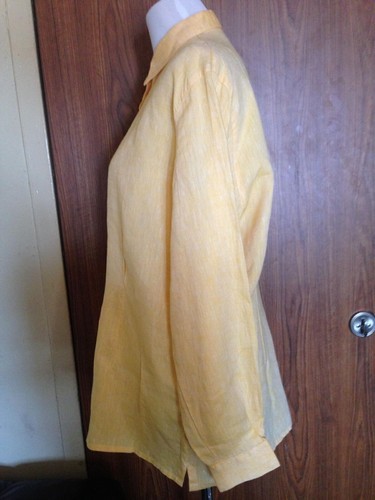Women's MULBERRY ENGLAND 100% Linen Yellow Button Down Shirt SZ 12 Made in Italy