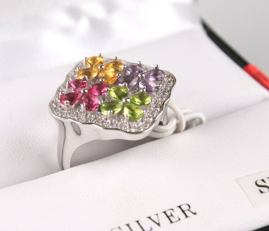 Tamaño 8 Plata de Ley Multi Flor Circonita Cúbica Anillo Nuevo Con Etiquetas