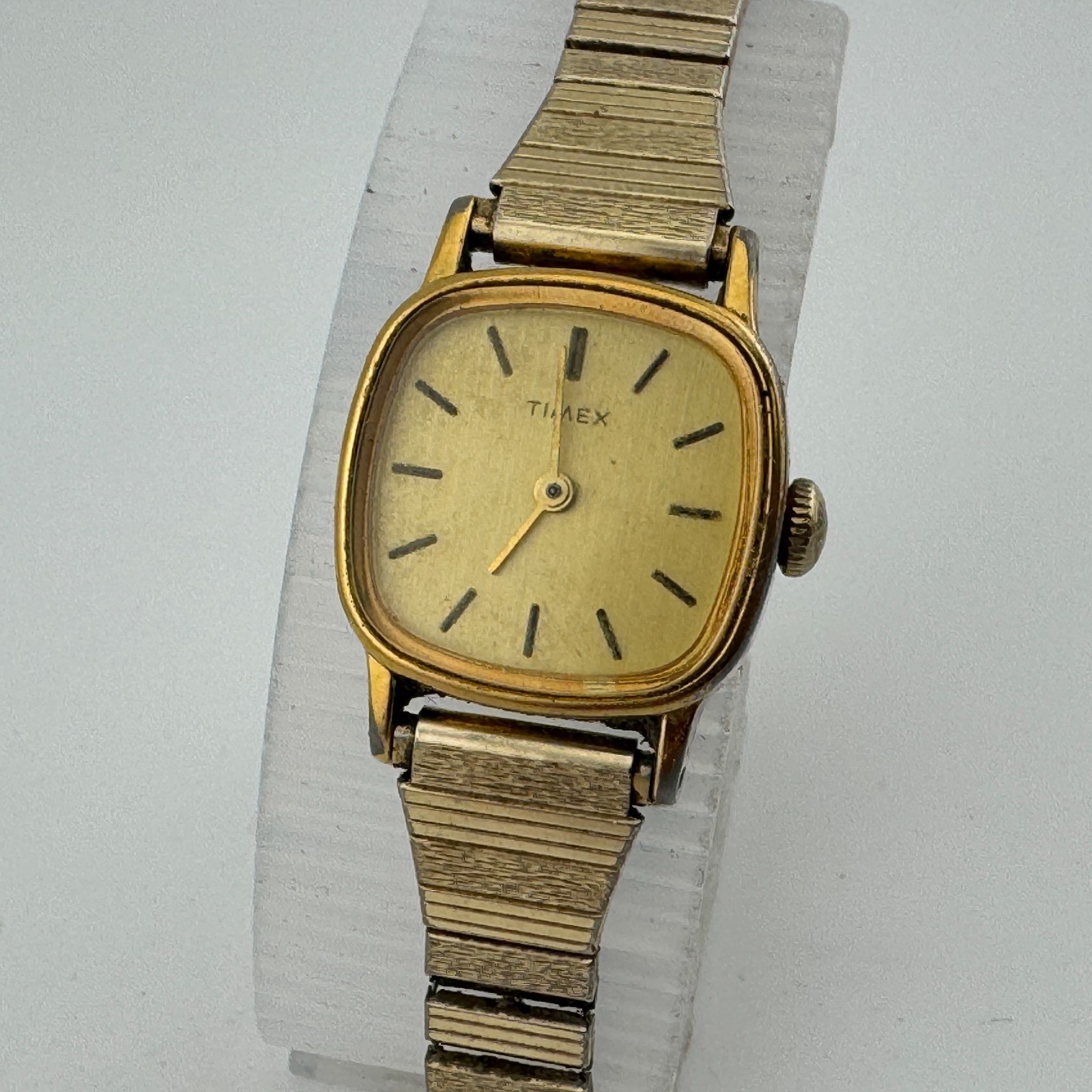 Vintage Timex Watch Women Hand Winding Mechanical Gold Tone Barrel Stretch Band