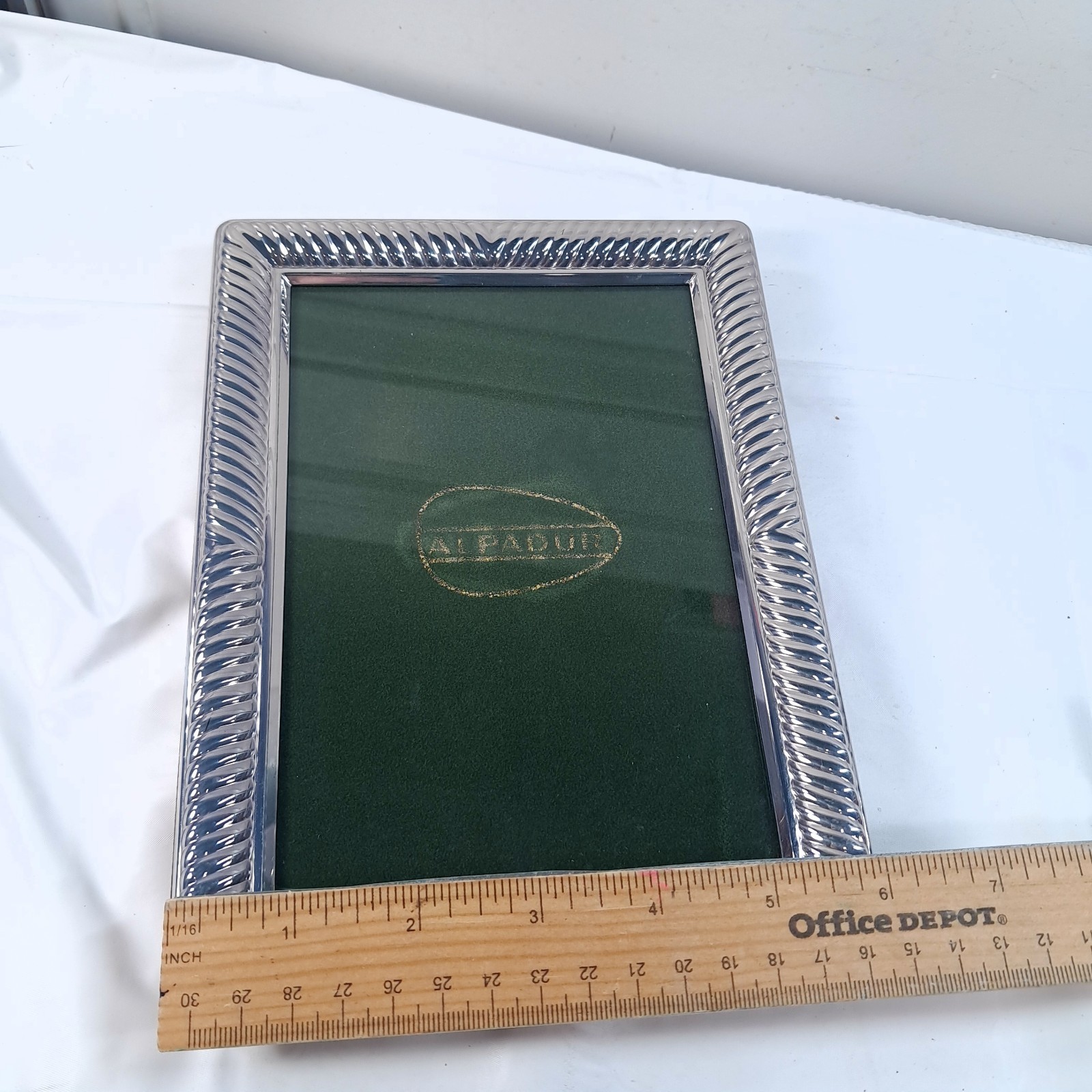 Vintage Alpadur picture photo Frame Silver tone rectangle tabletop rope design