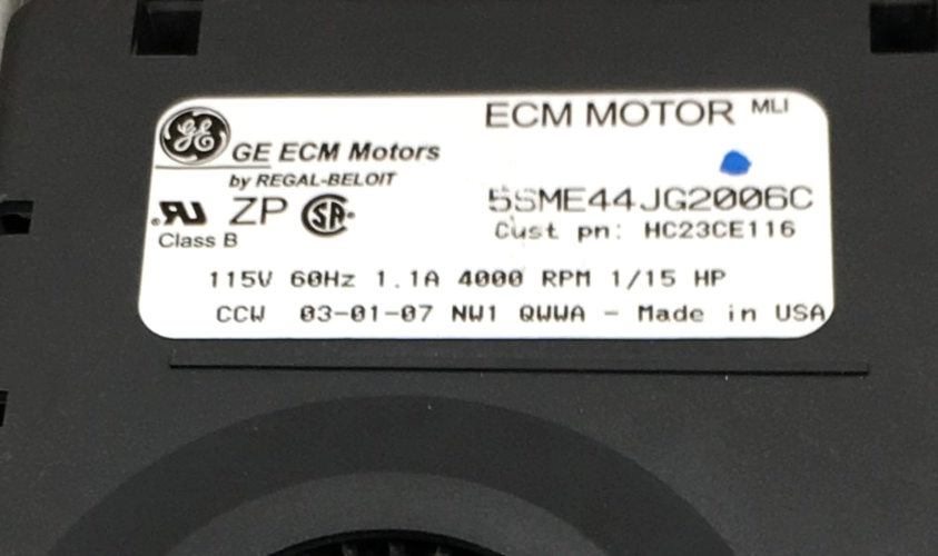 This is GE 5SME44JG2006C Draft Inducer Blower Motor 115V Carrier HC23CE116 4000 RPM 1/15 HP 1.1 A used part, no pressure switch included.