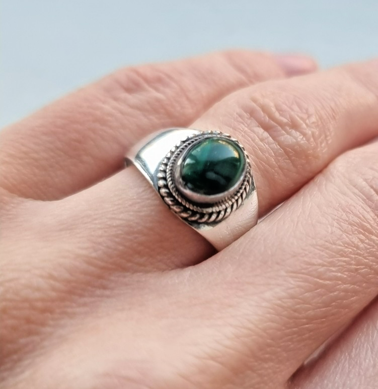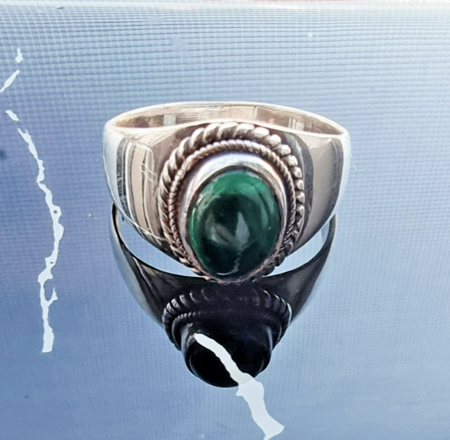 SOUTHWESTERN STYLE 925 STERLING SILVER OVAL 9X7 mm.  MALACHITE RING SIZE 9 added to cart.