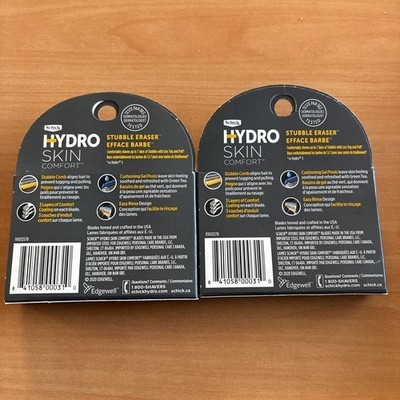 2 Pack Schick Hydro Skin Comfort Stubble Eraser Razor Refills 8 Cartridges Total