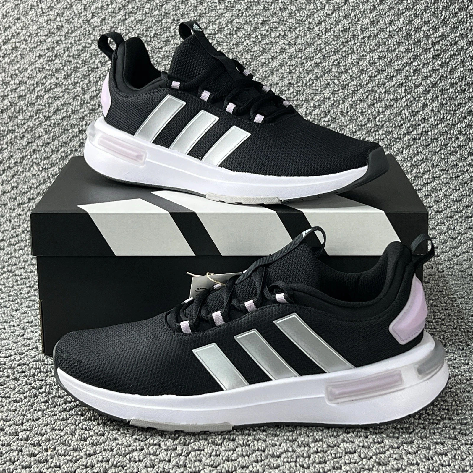 Adidas Racer TR23 Women #7.5 Running Shoes IF4369 Black Silver Metallic Lavender