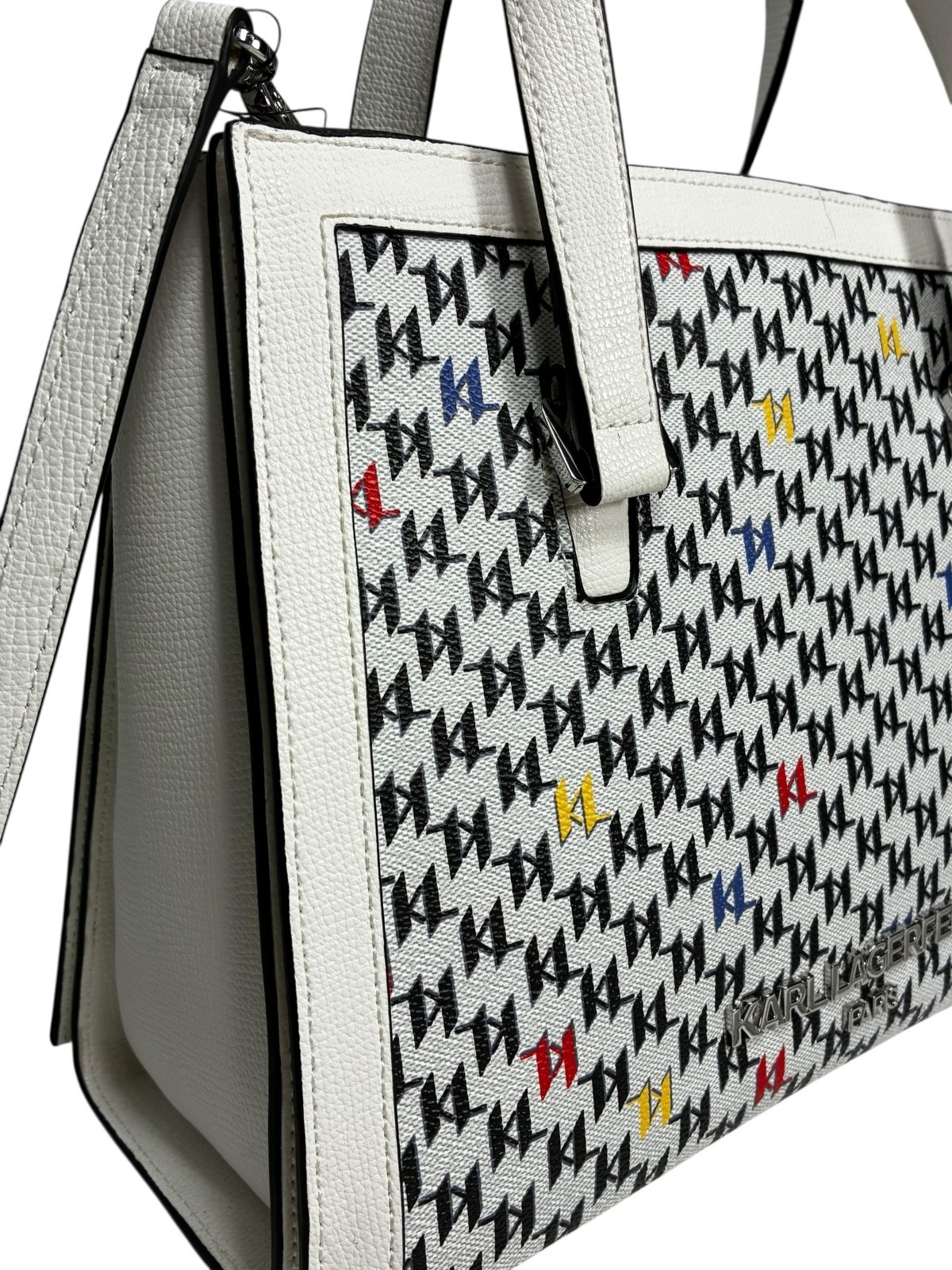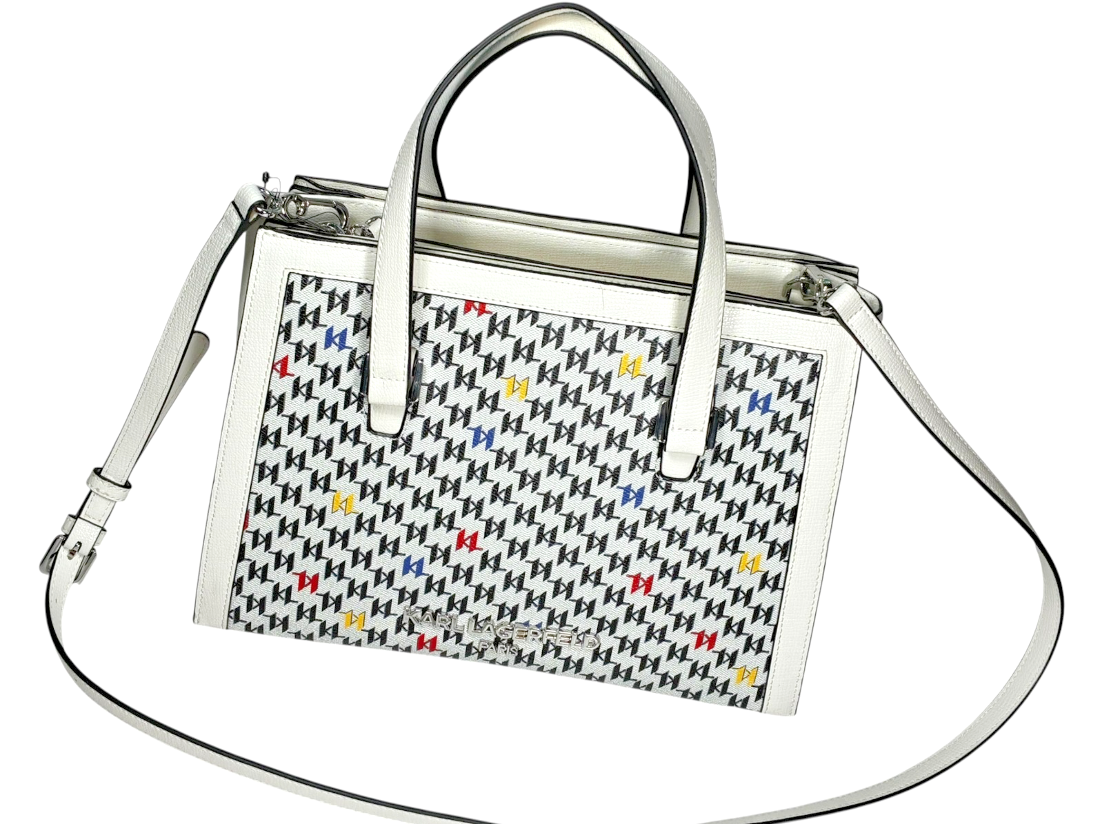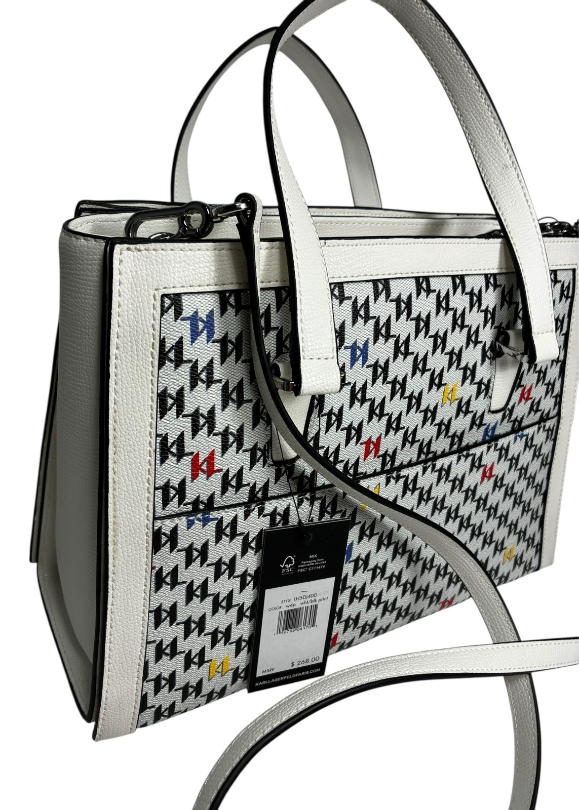 Karl Lagerfeld Paris Marselle Satchel White PU Women's Bag Purse Tote JH5DJ4DD